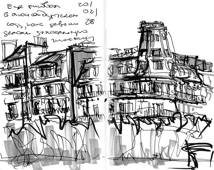 Рисую места, в которых бываю, архитектуру, которую вижу, и проекты, над которыми работаю. Чаще это быстрые наброски на ходу, но и их хочется сохранить.